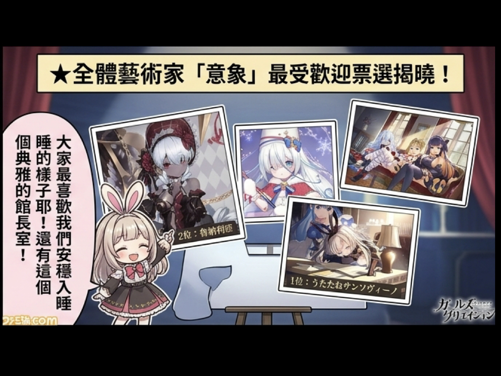 為了慶祝生放送順利結束,即日起登入遊戲即可領取豐富的紀念獎勵。各位館長們,可以與少女們共同開啟藝術的新篇章了。