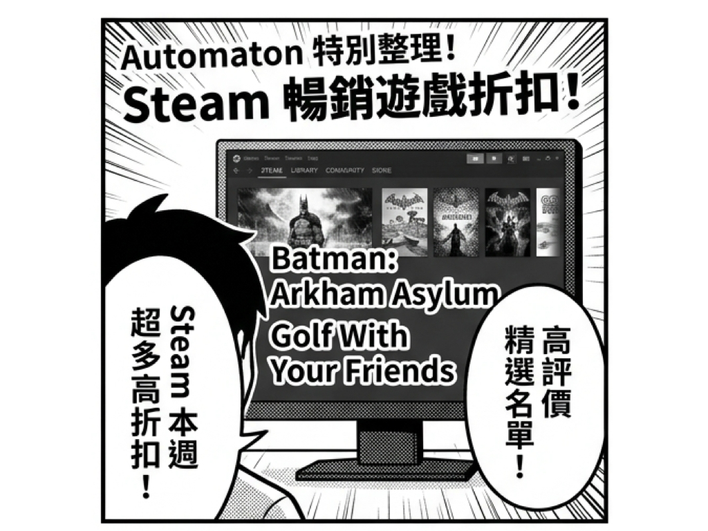 Steam 推出多款高折扣 PC 遊戲,日本遊戲媒體 AUTOMATON 特別整理出折扣幅度最高、評價良好的精選名單。其中,經典動作遊戲《Batman: Arkham Asylum Game of the Year Edition》祭出 85% 超值折扣,售價僅 297 日圓;而主打「玩家變成高爾夫球」的派對遊戲《Golf With Your Friends》更下殺至 152 日圓(90% off),成為最受矚目的超值選項。
