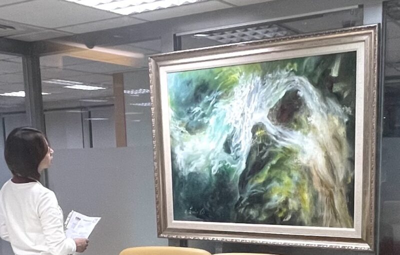 於本月份剛取得印度慶典國際藝術大賽的銅牌獎殊榮,讓世界看到台灣的林家同院長,此次亦展出中西不同的作品,展出的水墨畫為「心縱千里」的抽象綜合媒材為無限之境・光動藏易的——《無限寶樺》。這是林院長新創作的抽象西畫,首次於葫蘆墩文化藝術中心隆重亮相。成為本次開幕式最亮麗的畫作,亦是這次最閃亮、最耀眼的一幅50F的大作品。