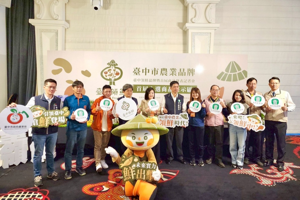 臺中市政府農業局12月18日上午舉辦「臺中領鮮」品牌暨首屆產品發表記者會,邀集各農會、入選品牌業者、區公所及媒體記者共襄盛舉,共同見證「臺中領鮮」首屆品牌制度啟動及農產品遴選成果。此次活動特別規劃品牌IP人偶裝開場演出,以及入選優良農產品展區,展現臺中農業品牌化的嶄新能量。