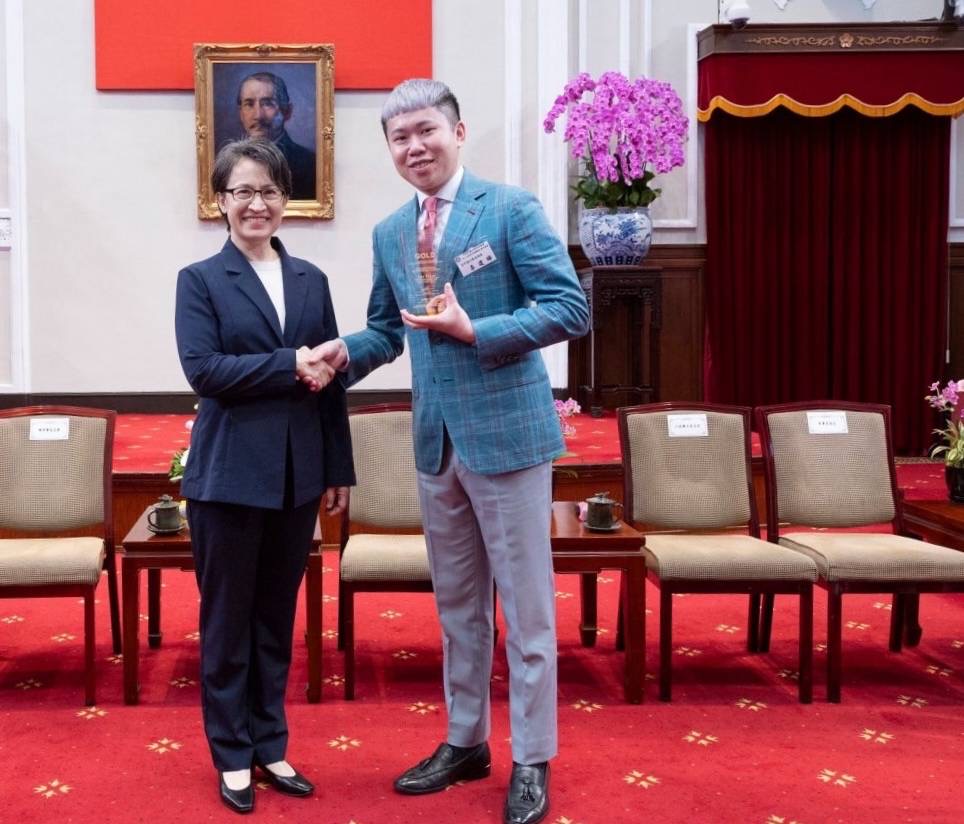 勇奪國際金手指大獎的衣啟飛翔學員李建曄,進總統府接受表揚。(圖/記者黃溎芬翻攝)