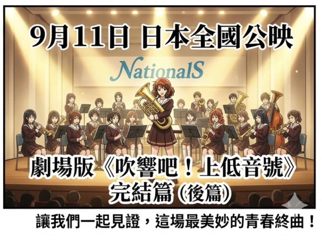 由京都動畫製作的超人氣系列《吹響吧!上低音號》正式宣布,劇場版完結篇的下半部(後篇)將於 2026 年 9 月 11 日在日本全國戲院上映。官方同步公開了包含全新分鏡的正式預告片,宣告久美子與北宇治高中的全國大賽之旅即將迎來最終章。