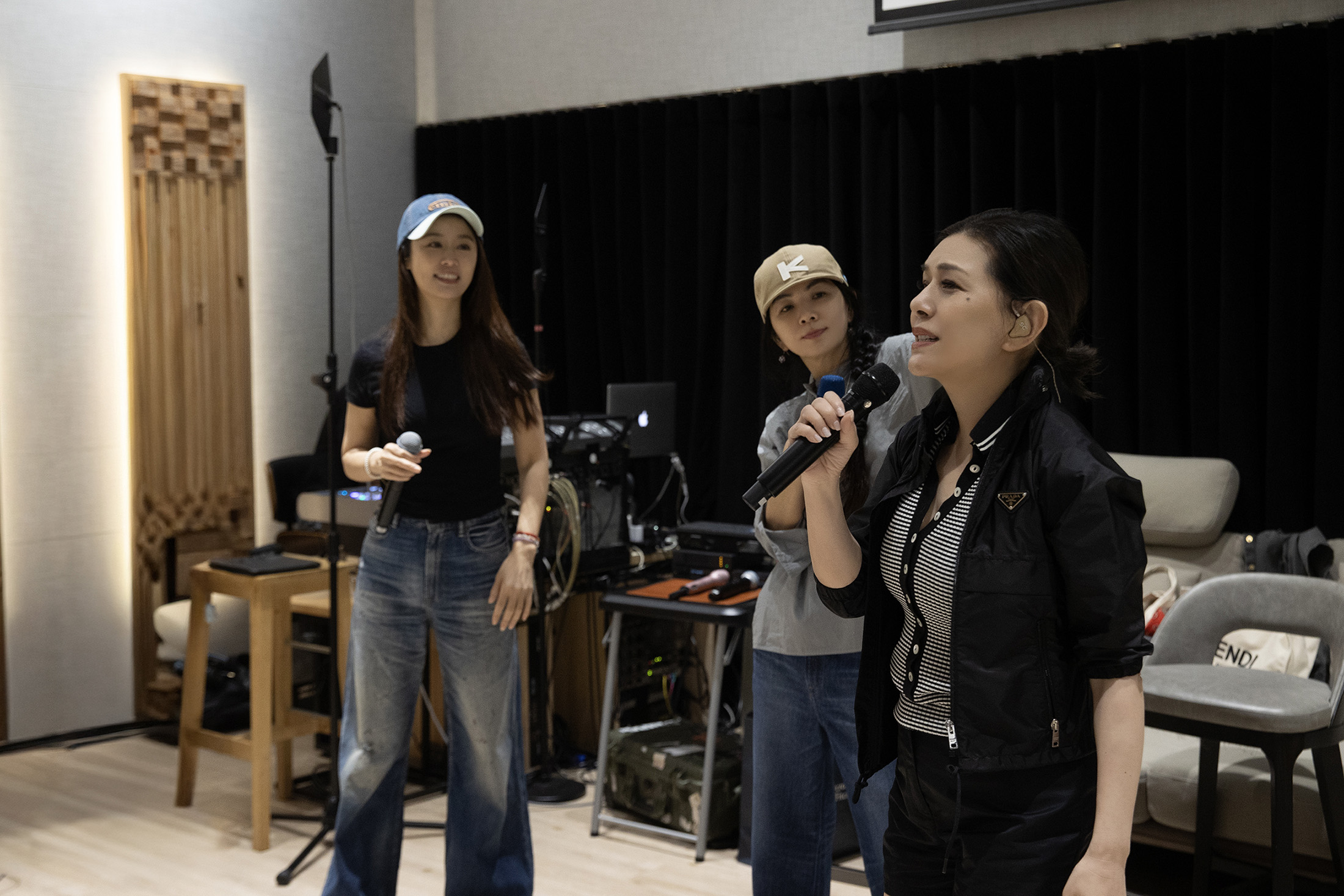 張清芳(右)為長照募款、林心如(左)Ella(中)合體彩排笑聲不斷 照片提供:上引娛樂