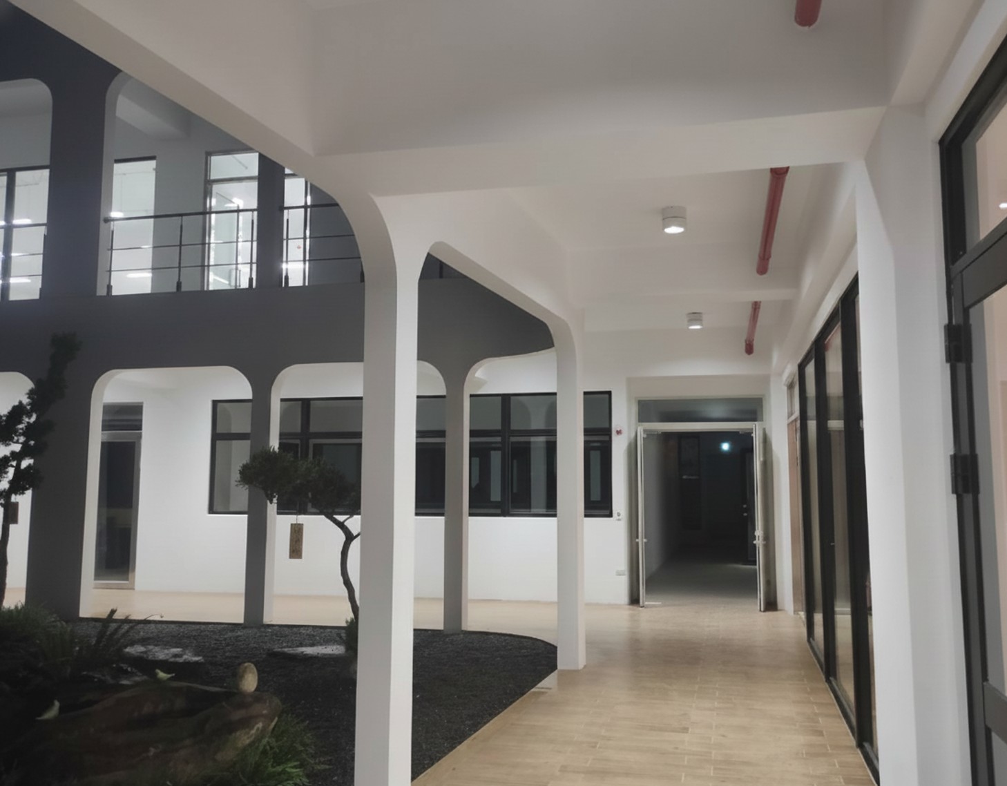 • 緊急應變: 關鍵性的設計考量,確保在緊急情況下,如消防或救護車等緊急車輛有機會開到中庭,極大提升了廠區內部救援的可及性與安全性,這是專業工業廠辦設計中不可或缺的考量。
