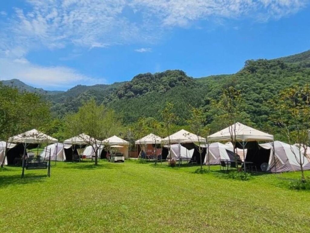 從南庄市區出發,順著南河一路向山中駛去,層疊的綠意與豁然開朗的天空迎面而來,讓人心曠神怡。在距離南庄老街僅約七、八分鐘車程的地方,有一處靜謐的苗栗懶人露營場【南庄山河苑露營區】,悄然在疫情期間誕生,並在台灣森林系奢華露營愛好者之間累積了極高的口碑。