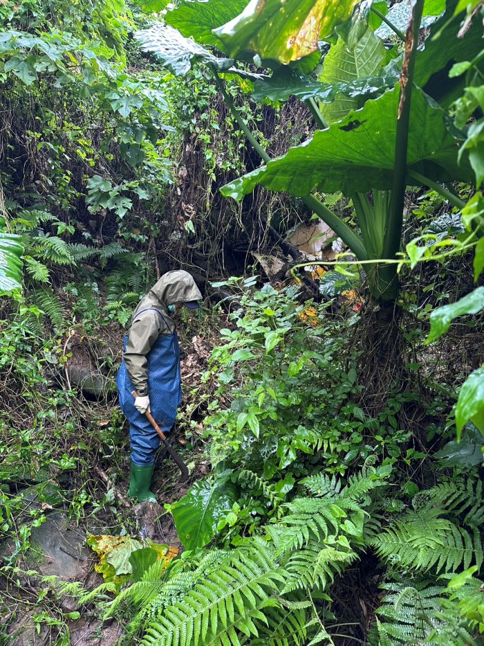 程大維指出,稽查人員於12月24日接獲民眾檢舉後即刻出擊,發現公司田溪有油污情形,立即於下游妥適處設置白色吸油棉索,另水利局亦於25日在下游增設橘色攔油索進行雙層防護。即使連日降雨,稽查人員仍不畏艱辛連續數日溯溪追蹤,身著青蛙裝深入溪床溯源,同步擴大範圍巡查周遭可疑污染源。