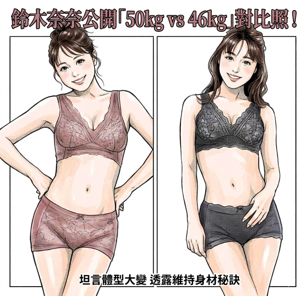 鈴木奈奈在貼文中感嘆:「體型真的變了不少呢!」從照片中可以清楚看到,46 公斤的她腰部線條更加緊實,臉部輪廓也更為深邃。她大方透露目前的精確體重為 46.1 公斤,並表示這是透過調整飲食習慣與規律運動達成的健康成果,並非極端的節食。