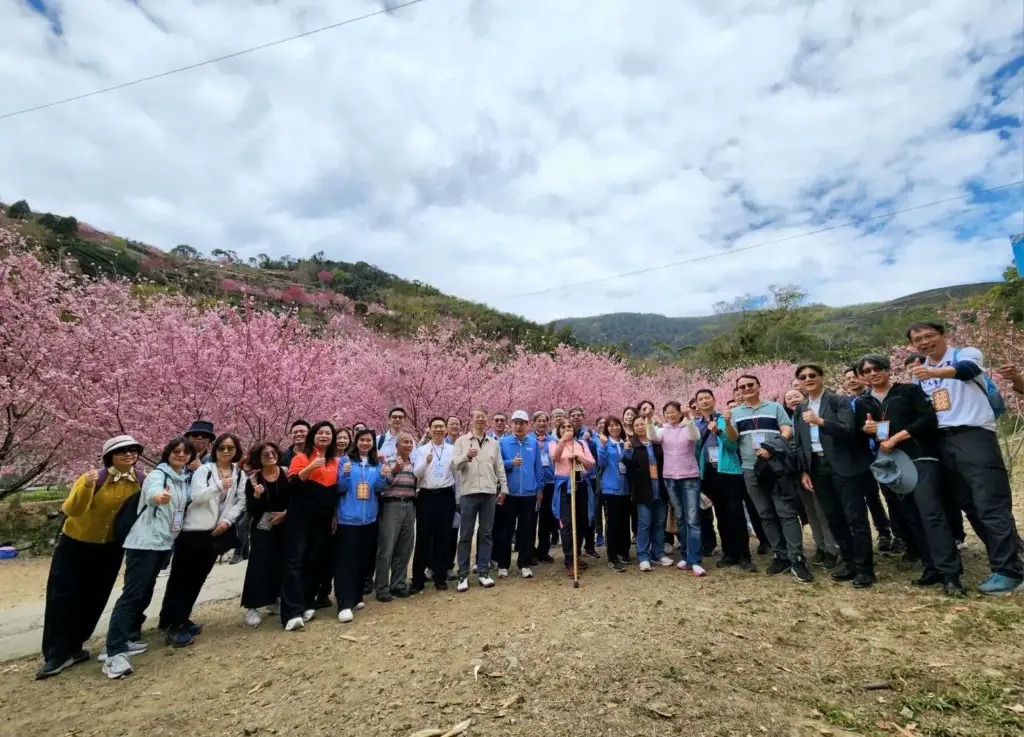 115年雲林縣官學醫及院檢調平台第一次聯繫會議於草嶺召開,與會人員於會前欣賞盛開櫻花。