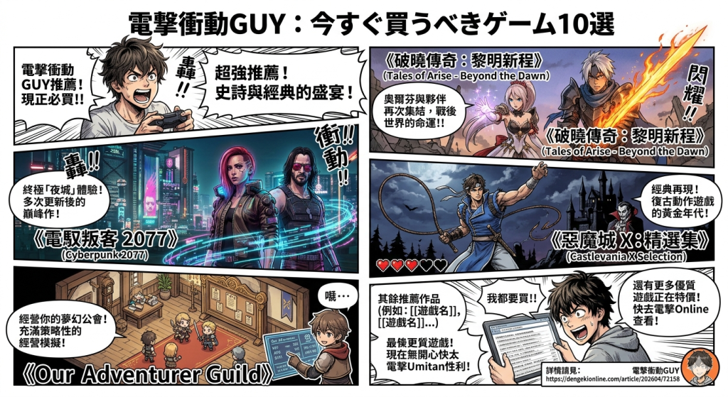 對於喜愛挖掘高 CP 值與高品質遊戲的玩家們,現在正是擴充遊戲庫的最佳時機。日本權威遊戲媒體「電撃Online」的熱門專欄【電撃衝動GUY】特別精選了 10 款目前最值得入手的遊戲,涵蓋了史詩級 RPG、開放世界傑作、經典重製以及創意十足的獨立作品。