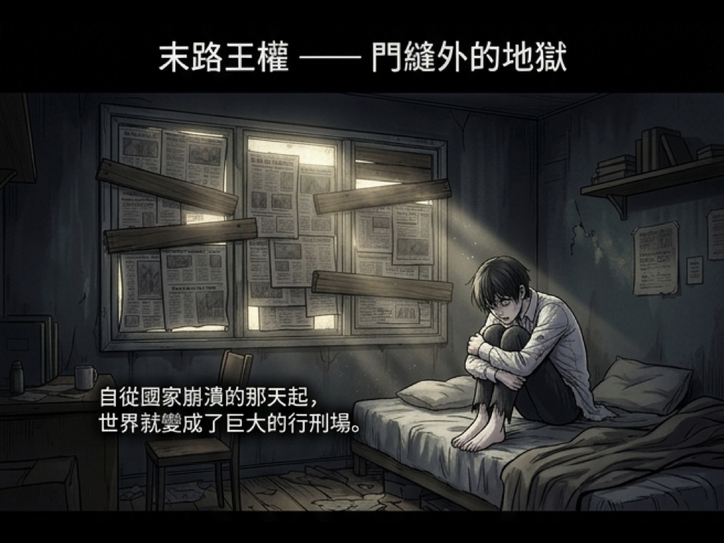 故事背景設定在異國都市的一間破舊出租房。主角是一位因國家崩潰而被迫隱姓埋名、四處竄逃的前王族青年。在極度的不安與恐懼中,唯一的依靠是伴隨身側、誓死效忠的臣下。然而,這份原本純粹的「忠誠」,在長期的幽閉生活與外界壓力下,逐漸演變成一種令人窒息的支配與依賴。
